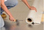 - 膨張粘土の寝具の層を適用する前に、可能性のある湿気の浸透から寝具を保護する防水に注意する必要があります。この目的のために、高強度プラスチックフィルムが最もよく使用されます。接合部では、フィルムは通常の構造の粘着テープで接着され、単一の密封された布を形成します。基板は部屋の周囲に広げられ、エッジが壁の充填層の上に重なるようになり、その後、余分な部分がトリミングされます.