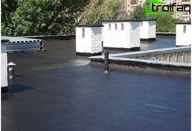 - 最初のステップは、完全な防水を作成することです。これを行うには、ビチューメンポリマーロール材料を床スラブに並べます。下層はベースに機械的に取り付けられ、上層は融合されています.